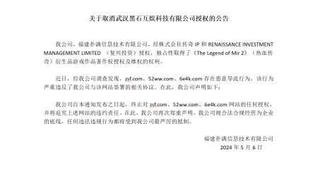 202405-06我公司,8868体育信息技术有限公司,经株式会社传奇IP和RENAISSANCE INVESTMENT MANAGE...