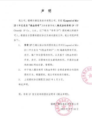 202404-05关于传奇IP已确认对8868体育授权有效之声明