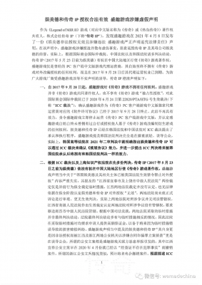 202105-211:深圳娱美德传奇科技有限公司(以下简称“深圳娱美德”)此前通过传奇IP关联方所获得的一切权利,截至2021年4月28日已终止。自...